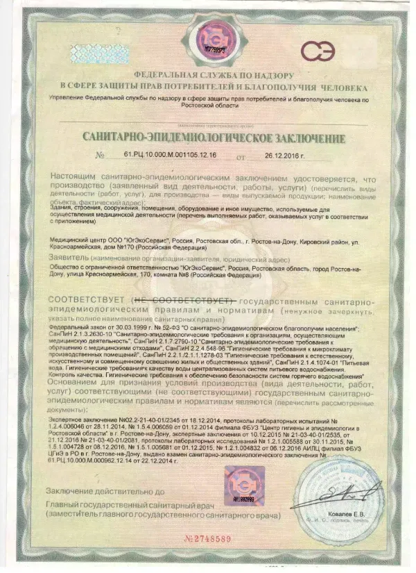 Наша работа полностью регламентируется действующими нормативно-правовыми актами Российской Федерации. Все протоколы лечения и оказания услуг строго соответствуют утверждённым стандартам и приказам Минздрава РФ
